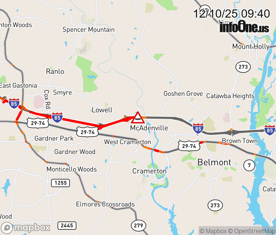 Canceled 12/10/25 9:42 AM Location: I-85S at MM 23.5, NC Vehicle Crash.