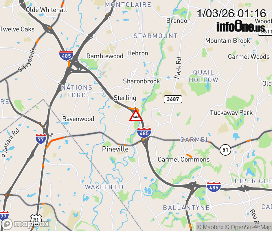 The shoulder is closed on Exit 65 A (South Blvd). Updated: Sat 1/3/26 1:16 AM EST ![]() Updated: Sat 1/3/26 1:16 AM EST |