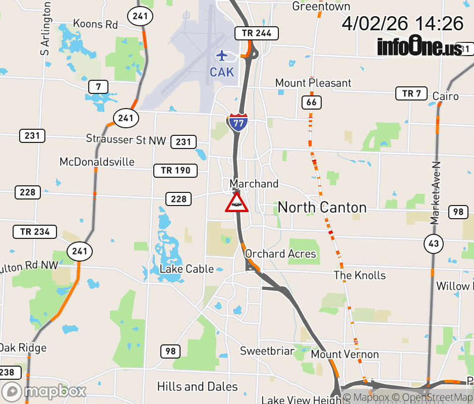 The right shoulder is blocked on I-77 South beyond Portage St, due to a crash. ![]() |