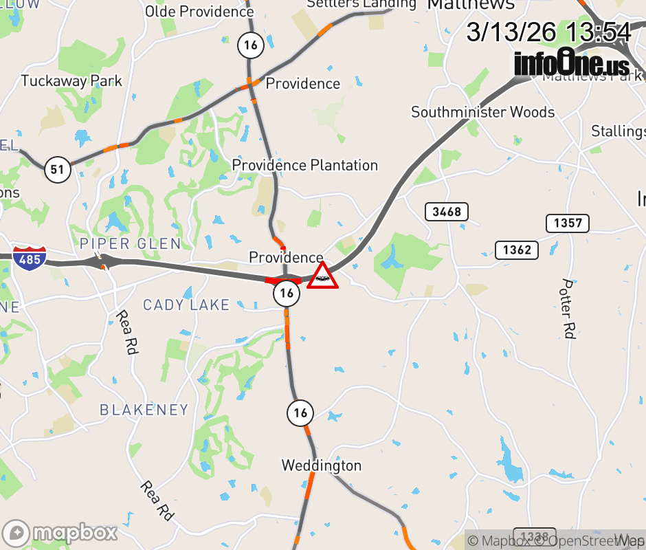 The right shoulder is closed past Exit 57 (Providence Road). Updated: Fri 3/13/26 1:54 PM EDT ![]() Updated: Fri 3/13/26 1:54 PM EDT |