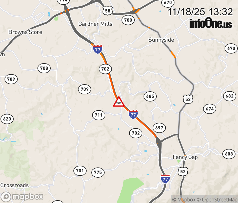 On I-77 at mile marker 11 in the County of Carroll, motorists can expect delays due to a vehicle crash. The south right shoulder is closed. Updated: Tue 11/18/25 1:32 PM EST ![]() Updated: Tue 11/18/25 1:32 PM EST |