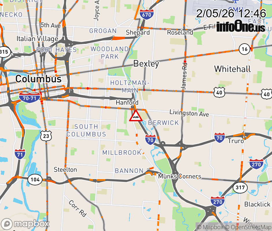 Ramp to US-33/Livingston Ave from I-70 West is blocked due to disabled vehicle. ![]() |