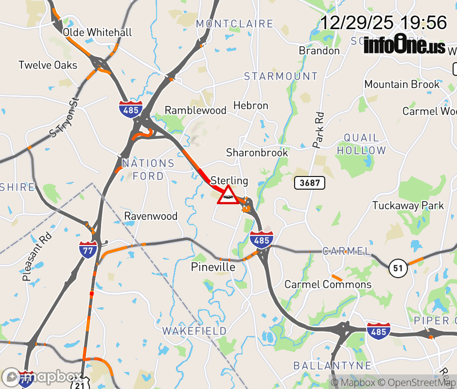 The right shoulder is closed prior to Exit 67 (I-77) Updated: Mon 12/29/25 7:56 PM EST ![]() Updated: Mon 12/29/25 7:56 PM EST |