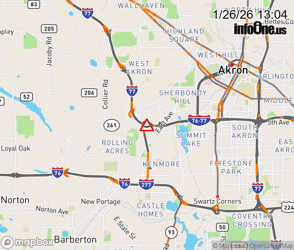 The left lane is blocked on Ramp I-76 East to I-77 North, due to a crash. ![]() |