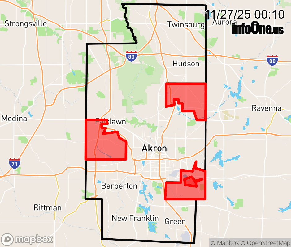 Summit County has 19 power outages affecting 251 customers. Ohio Edison 251 without power Copley Township: Customers affected: 110 (1%) Estimated repair: Thu 6:00 AM Stow: Customers affected: 80 (1%) Estimated repair: Thu 1:00 AM Springfield Township: Customers affected: 21 (< 1%) Estimated repair: Thu 8:00 AM Bath Township: Customers affected: 20 (< 1%) Estimated repair: Thu 6:00 AM Akron: Customers affected: 19 (< 1%) Estimated repair: Thu 6:00 AM Macedonia: Customers affected: 19 (< 1%) Estimated repair: Thu 1:00 AM Twinsburg Township: Customers affected: 19 (1%) Estimated repair: Thu 1:00 AM Richfield: Customers affected: 19 (1%) Estimated repair: Thu 1:00 AM Peninsula: Customers affected: 19 (5%) Estimated repair: Thu 6:00 AM Boston Township: Customers affected: 19 (4%) Estimated repair: Thu 6:00 AM Lakemore: Customers affected: 19 (1%) Estimated repair: Thu 4:00 AM Updated: Thu 11/27/25 12:10 AM EST ![]() Updated: Thu 11/27/25 12:10 AM EST |