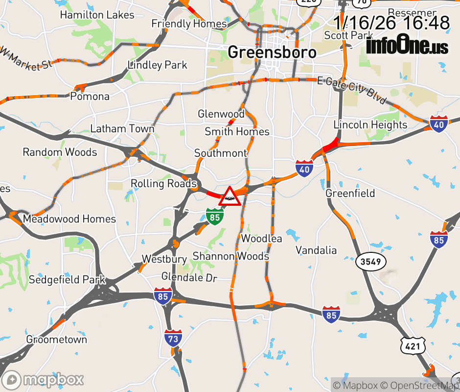 The right shoulder is closed past exit 219 (Freeman Mill Rd). Updated: Fri 1/16/26 4:48 PM EST ![]() Updated: Fri 1/16/26 4:48 PM EST |