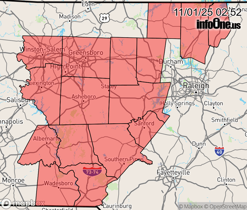 Canceled 11/1/25 9:00 AM Frost Advisory issued November 1 at 2:50AM EDT until November 1 at 9:00AM EDT by NWS Raleigh NC * WHAT... Temperatures as low as 33 will result in frost formation. * WHERE... A portion of central North Carolina. * WHEN... Until 9 AM EDT this morning. * IMPACTS... Frost could harm or kill sensitive outdoor vegetation or plants if left uncovered. ![]() |