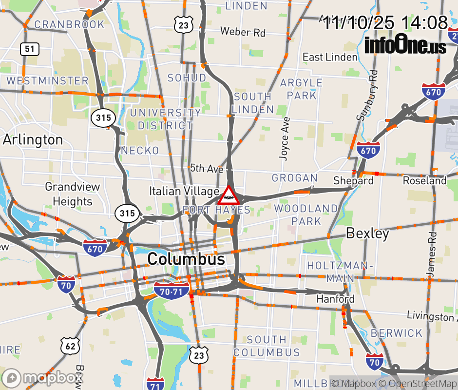 The left shoulder is blocked on I-670 West beyond I-71 North/South, due to a crash. ![]() |