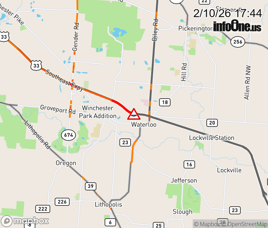 Expect lane closures on US-33 East at US-33 (Fairfield County), due to a crash. ![]() |