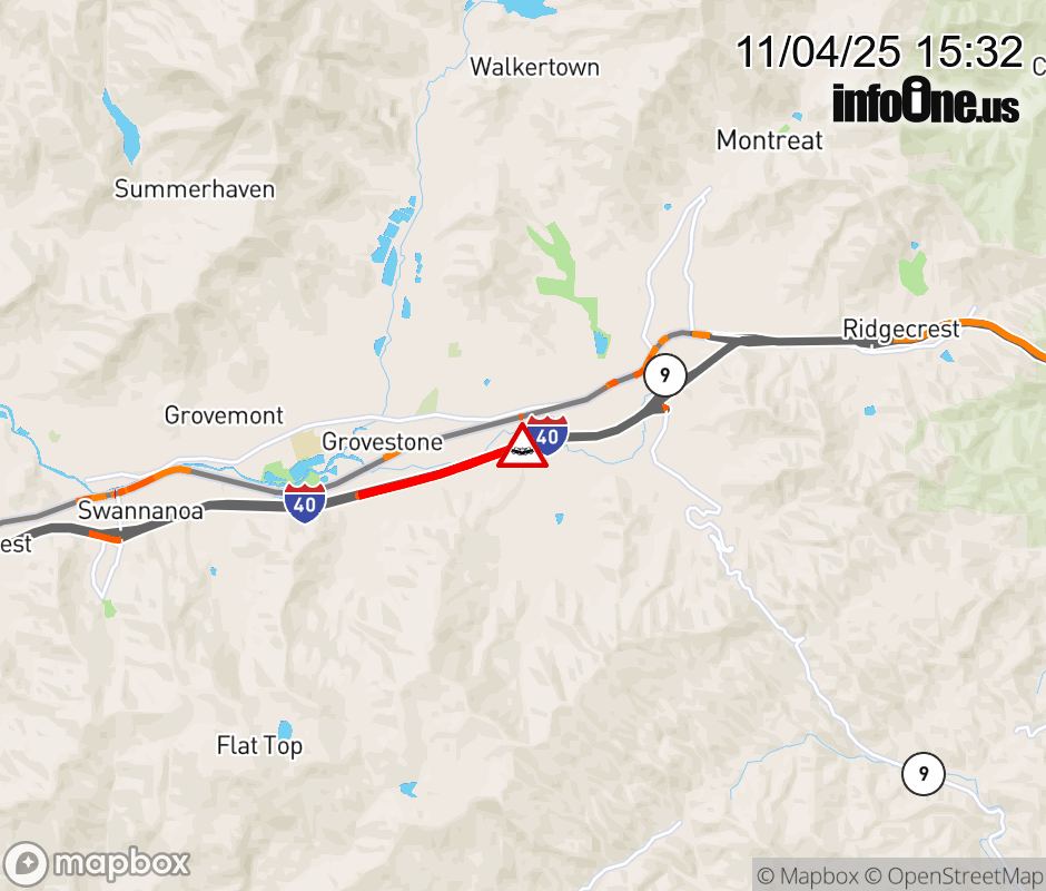 The right shoulder is closed 1 mile prior to Exit 64, NC 9. Updated: Tue 11/4/25 3:32 PM EST ![]() Updated: Tue 11/4/25 3:32 PM EST |
