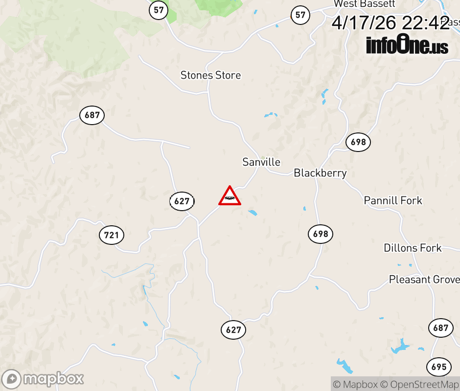 On Rt. 626 East in the County of Henry, in the vicinity of Cassell Dr; Rt. 880N/S (Henry County), motorists can expect delays due to a vehicle crash. Lane closures exist. Updated: Fri 4/17/26 10:42 PM EDT ![]() Updated: Fri 4/17/26 10:42 PM EDT |
