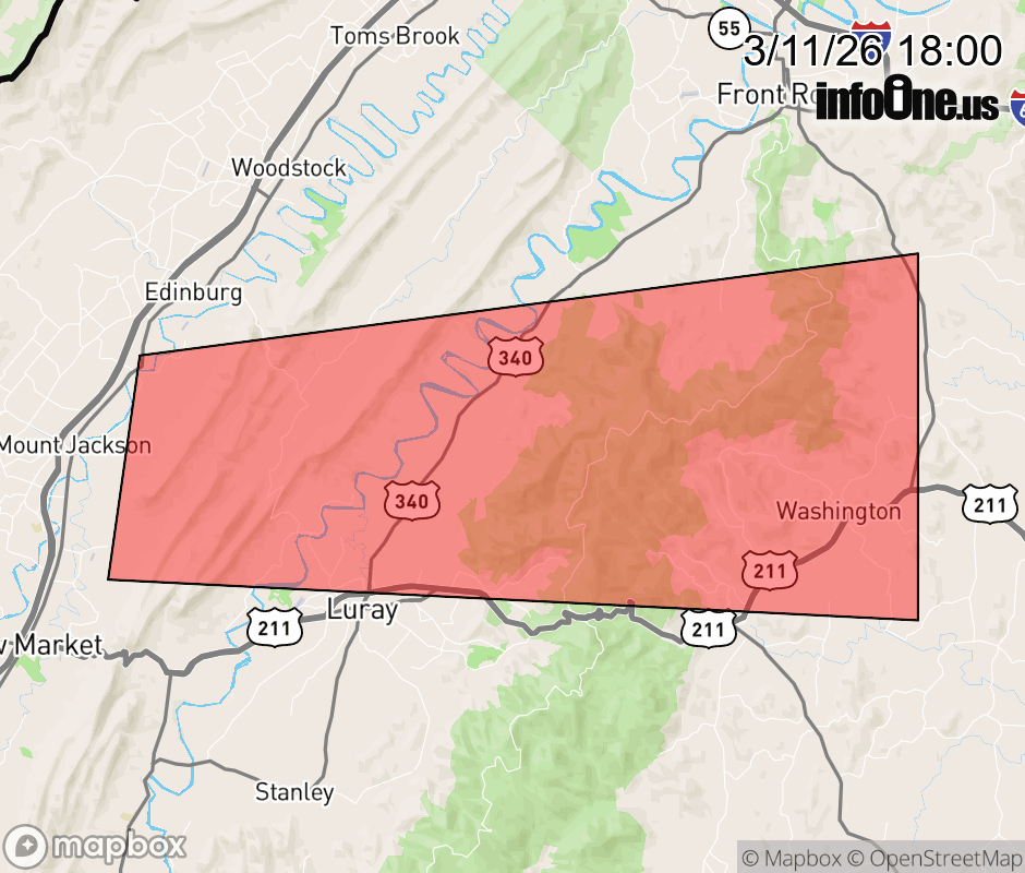 Canceled 3/11/26 6:11 PM Severe Thunderstorm Warning issued March 11 at 5:59PM EDT until March 11 at 6:30PM EDT by NWS Baltimore MD/Washington DC SVRLWX The National Weather Service in Sterling Virginia has issued a * Severe Thunderstorm Warning for... Southeastern Shenandoah County in northwestern Virginia... Southwestern Warren County in northwestern Virginia... Northeastern Page County in northwestern Virginia... Northwestern Rappahannock County in northwestern Virginia... * Until 630 PM EDT. * At 558 PM EDT, a severe thunderstorm was located near Luray, or 10 miles south of Woodstock, moving east at 45 mph. HAZARD...60 mph wind gusts. SOURCE...Law enforcement has reported wind damage in southern Shenandoah County. IMPACT...Damaging winds will cause some trees and large branches to fall. This could injure those outdoors, as well as damage homes and vehicles. Roadways may become blocked by downed trees. Localized power outages are possible. Unsecured light objects may become projectiles. * Locations impacted include... Luray, Flint Hill, Washington, Kimball, Huntly, Kings Crossing, Compton, Browntown, Fourway, and Rileyville. ![]() |