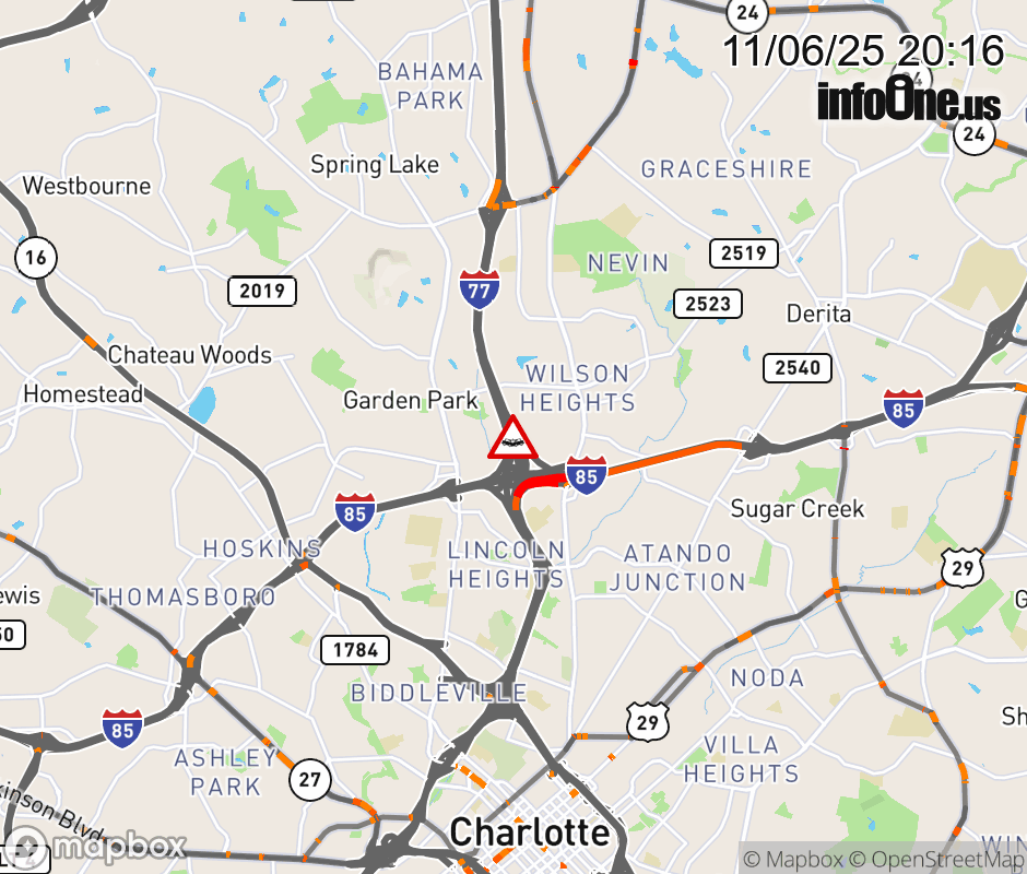 Crash on I-77 North Bound near exit 13, I-85 Interchange. The center lanes are blocked. ![]() |