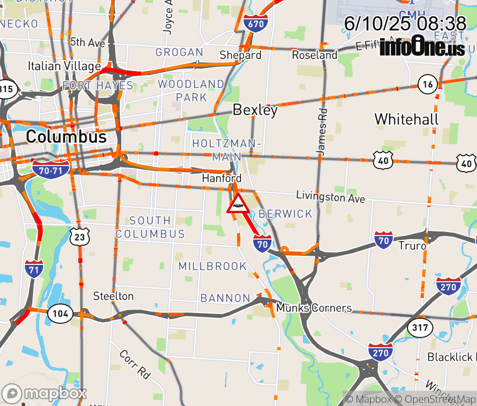 The 2 left lanes are blocked on I-70 West at US-33/Livingston Ave, due to a crash. Updated: Tue 6/10/25 8:38 AM EDT ![]() Updated: Tue 6/10/25 8:38 AM EDT |