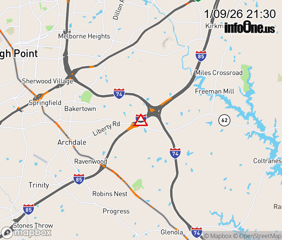 The left lanes is closed at Exit 113(NC 62). Updated: Fri 1/9/26 9:30 PM EST ![]() Updated: Fri 1/9/26 9:30 PM EST |