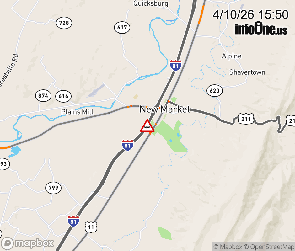 On I-81 at mile marker 264.4 in the County of Shenandoah, motorists can expect delays due to a vehicle crash. The north right shoulder is closed. ![]() |