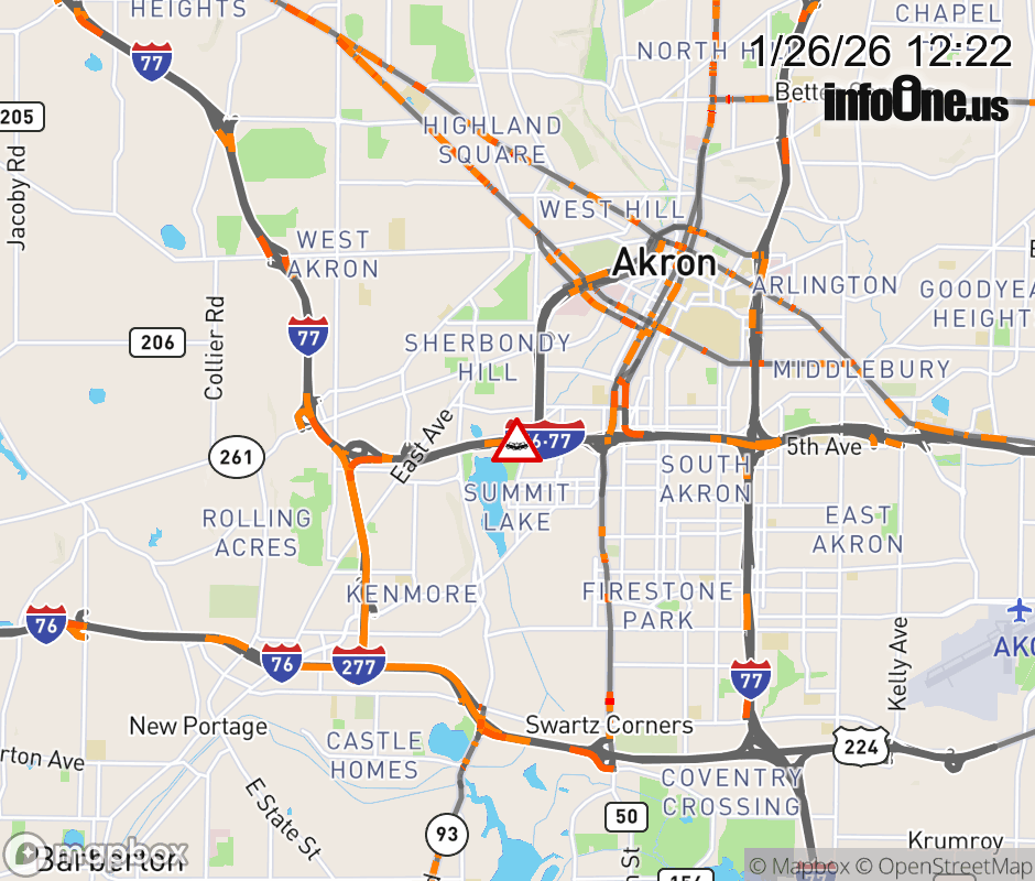 The right lane is blocked on I-76 West/I-77 North beyond SR-59/Dart Ave, due to a crash. ![]() |
