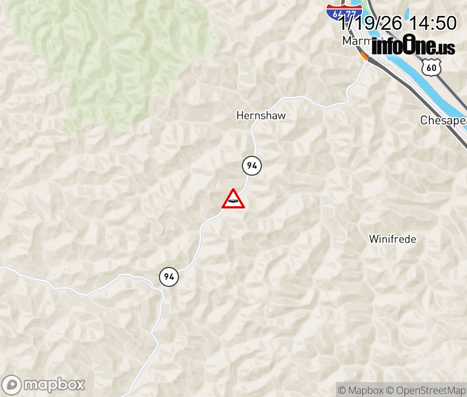 Vehicle Crash on WV-94 (4700 BLK of Lens Creek Rd) in Hernshaw. Updated: Mon 1/19/26 2:50 PM EST ![]() Updated: Mon 1/19/26 2:50 PM EST |