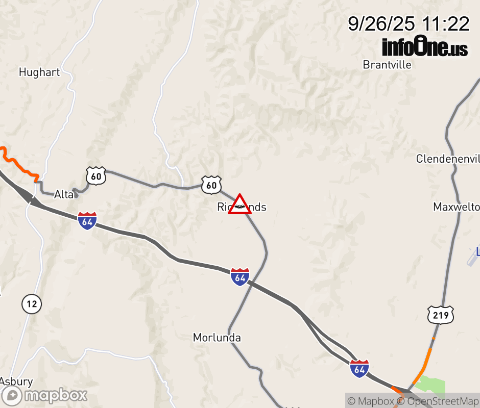 In Greenbrier County there is a Vehicle Crash on US-60W at Mile Marker 25.83. 26100 block Midland Trail E. Updated: Fri 9/26/25 11:22 AM EDT ![]() Updated: Fri 9/26/25 11:22 AM EDT |