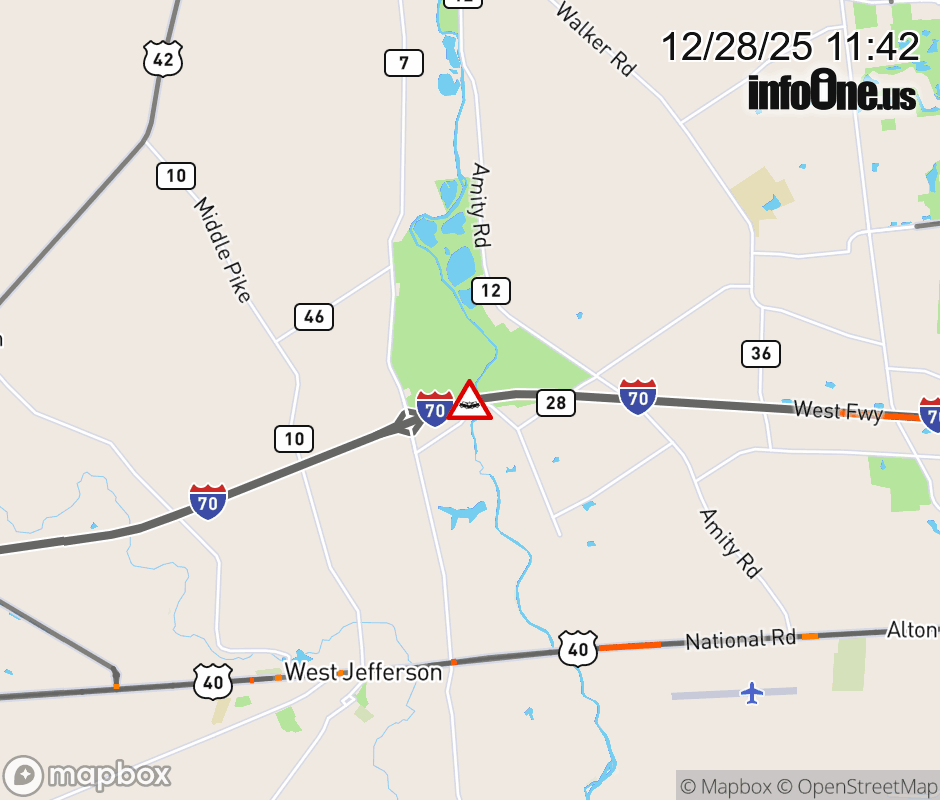 The left lane is blocked on I-70 West beyond Hilliard-Rome Rd South, due to a crash. Updated: Sun 12/28/25 11:42 AM EST ![]() Updated: Sun 12/28/25 11:42 AM EST |