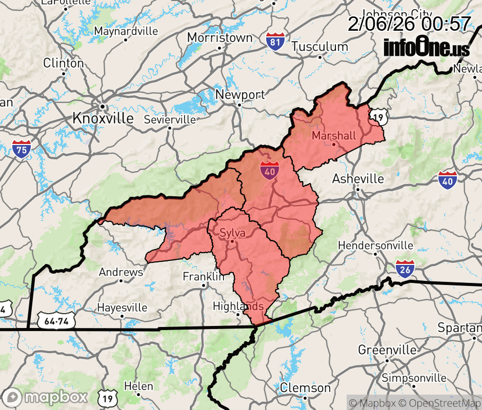Cold Weather Advisory issued February 6 at 12:56AM EST until February 8 at 7:00AM EST by NWS Greenville-Spartanburg SC * WHAT... Very cold wind chills as low as 10 below expected above 3500 feet, and possibly lower on high ridgetops. * WHERE... Haywood, Madison, Northern Jackson, and Swain Counties. * WHEN... From 1 AM Saturday to 7 AM EST Sunday. * IMPACTS... The dangerously cold wind chills as low as 10 below zero could result in hypothermia or frostbite if precautions are not taken. ![]() |
