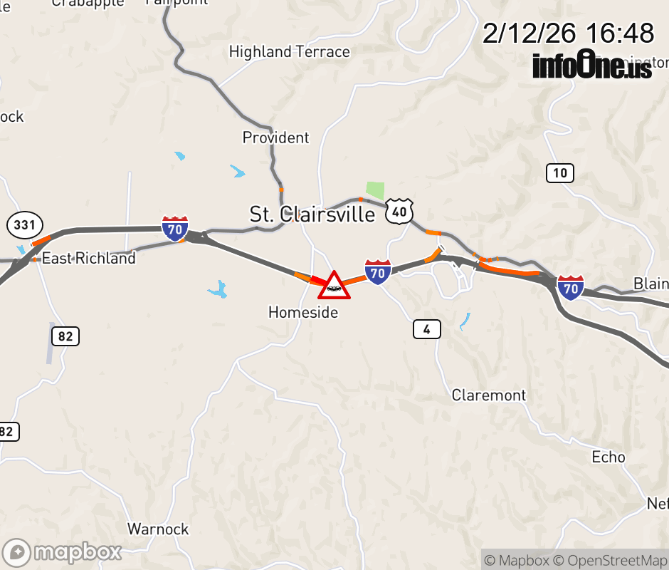 Expect lane closures on I-70 East beyond SR-9/St Clairsville, due to a crash. ![]() |