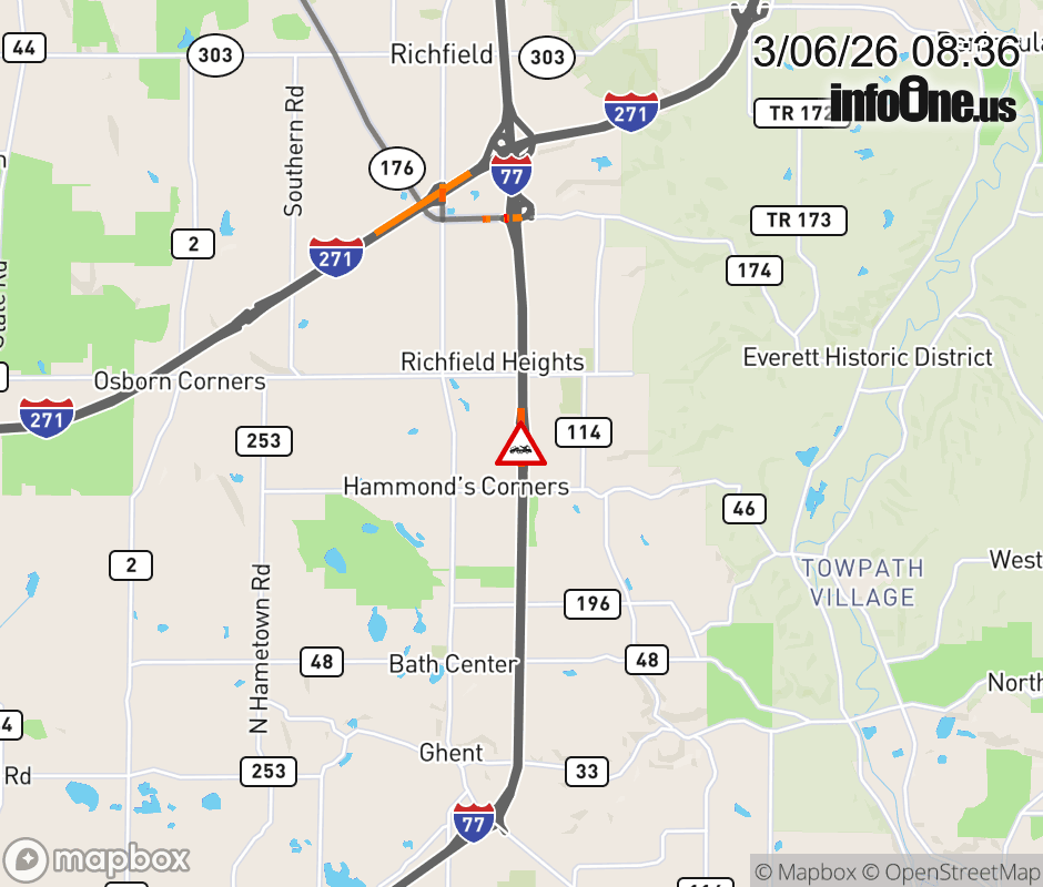 The left lane is blocked on I-77 South beyond Summit County Rest Area 4-32, due to a disabled vehicle. ![]() |