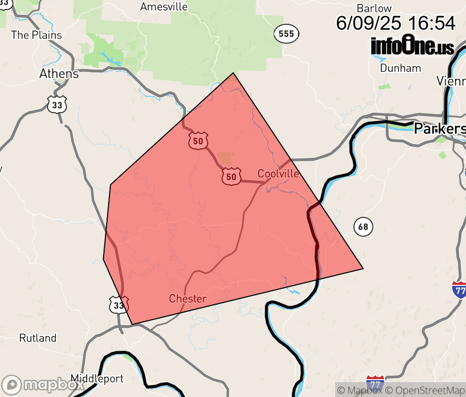 Canceled 6/9/25 5:00 PM Severe Thunderstorm Warning issued June 9 at 4:53PM EDT until June 9 at 5:00PM EDT by NWS Charleston WV The storm which prompted the warning has weakened below severe limits, and no longer poses an immediate threat to life or property. Therefore, the warning will be allowed to expire. However, gusty winds and heavy rain are still possible with this thunderstorm. A Severe Thunderstorm Watch remains in effect until 1000 PM EDT for southeastern Ohio...and northwestern West Virginia. ![]() |