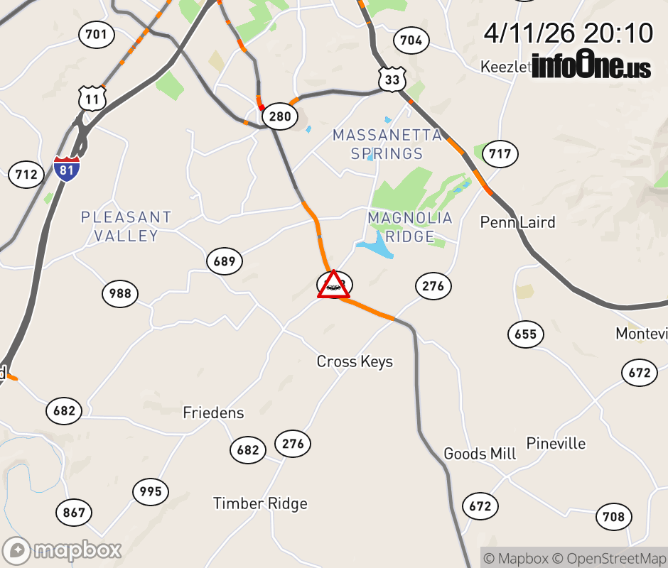 On Rt. 680 South in the County of Rockingham, in the vicinity of Port Republic Rd; VA-253E/W, motorists can expect delays due to a vehicle crash. Updated: Sat 4/11/26 8:10 PM EDT ![]() Updated: Sat 4/11/26 8:10 PM EDT |