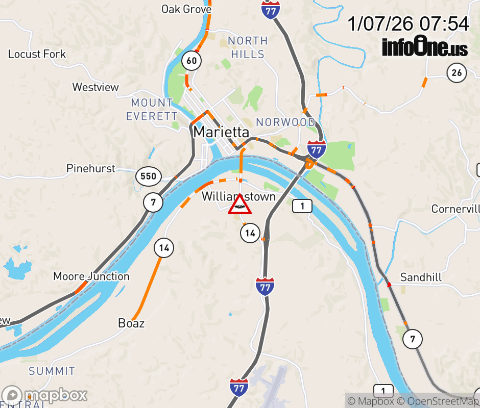 Vehicle Crash on WV-14 (Highland Ave) & W 8th St in Williamstown. ![]() |