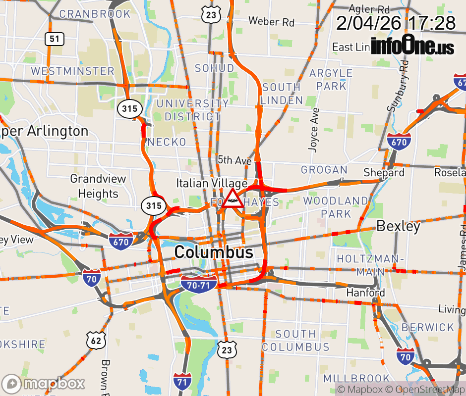 The right lane is blocked on I-670 West at High St/US-23 S/Third St, due to a crash. ![]() |
