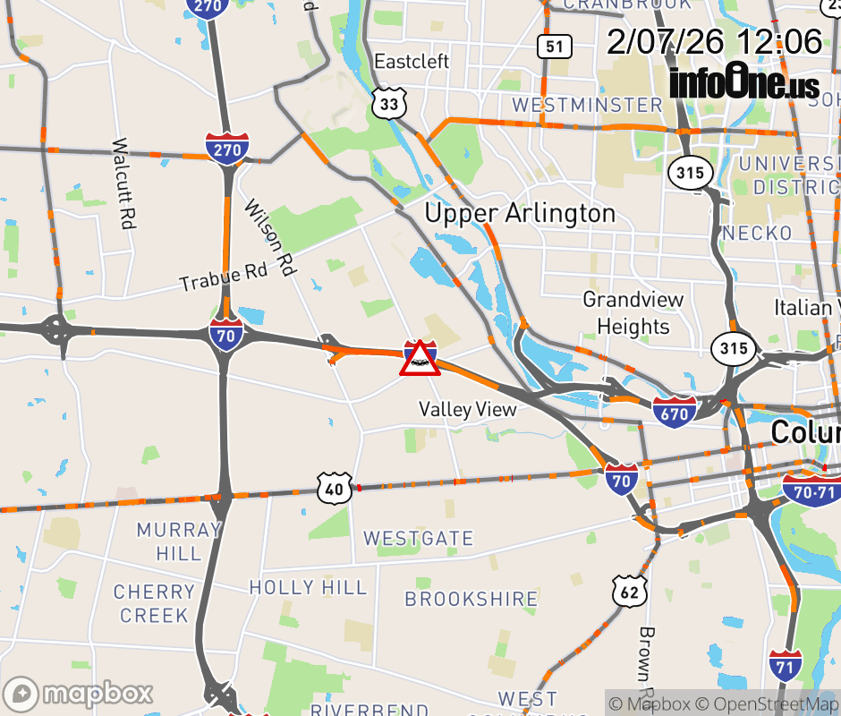 The left lane is blocked on I-70 East beyond Wilson Rd, due to a crash. Updated: Sat 2/7/26 12:06 PM EST ![]() Updated: Sat 2/7/26 12:06 PM EST |