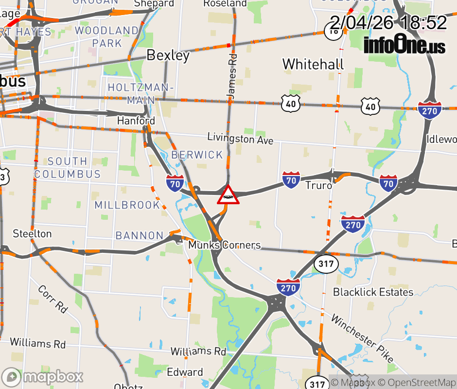 Expect lane closures on Ramp I-70 East to James Rd South at I-70 East, due to a crash. ![]() |