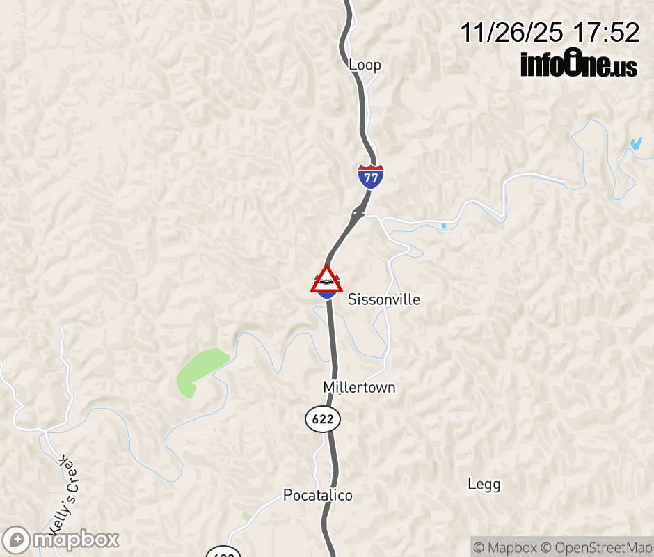 Canceled 11/26/25 5:54 PM Location: I-77 at MM 115.0, WV Accident.