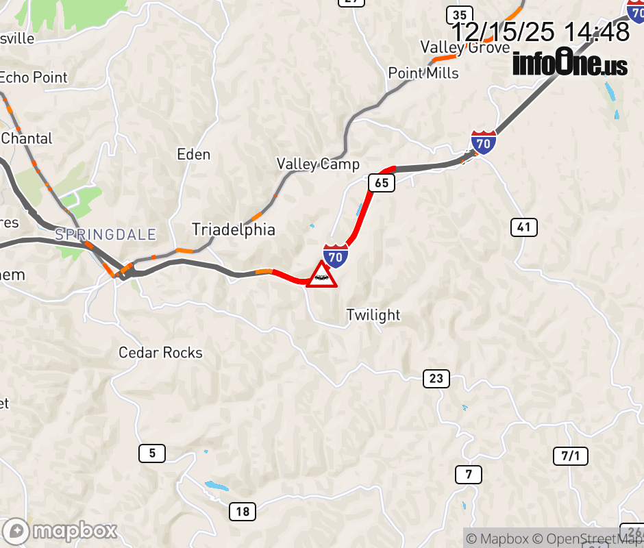 Canceled 12/15/25 2:50 PM Location: I-70 at MM 8.0, WV Accident.