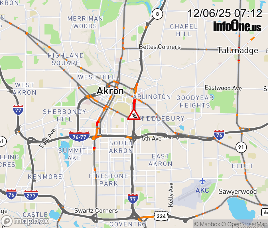 The 2 left lanes are blocked on SR-8 North at SR-18/Carroll St/Buchtel Ave, due to repairs/maintenance. ![]() |