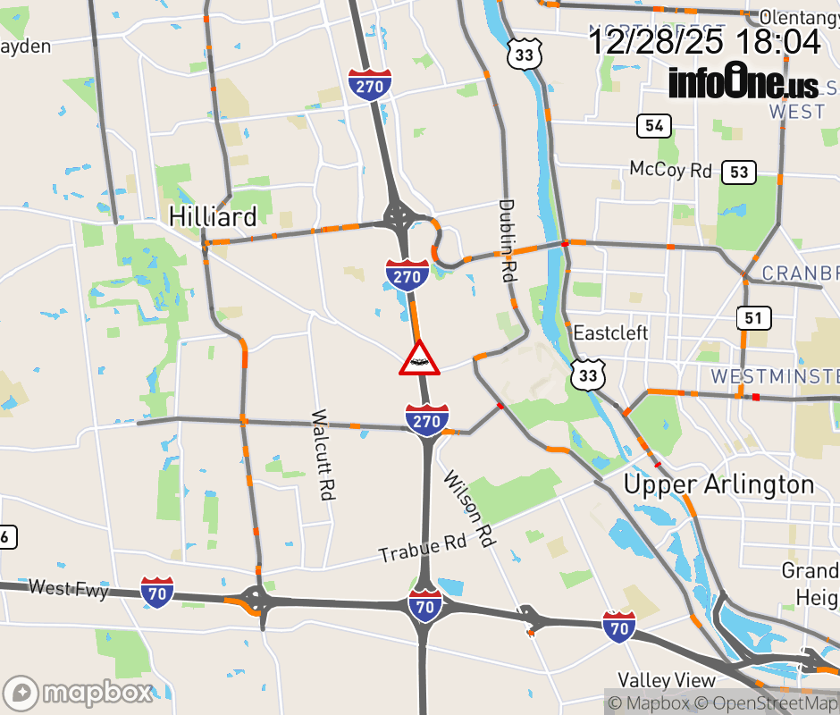 Canceled 12/28/25 6:34 PM Location: I-270 North N, OH Accident.