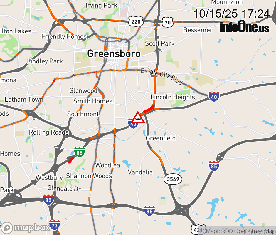 The left lane is closed at I-40 merge. ![]() Updated: Wed 10/15/25 5:24 PM EDT |