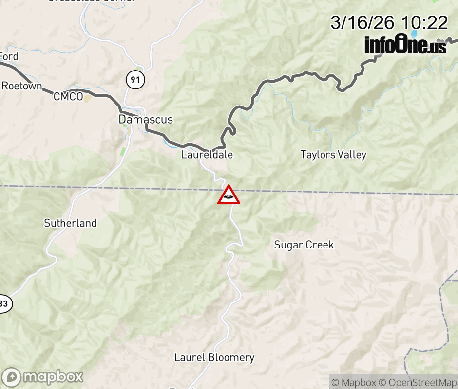 On VA-91 in the County of Washington, in the vicinity of Hebron Ln; Rt. 834E (Washington County), motorists can expect delays due to a vehicle crash. All north lanes are closed. All south lanes are closed. ![]() |
