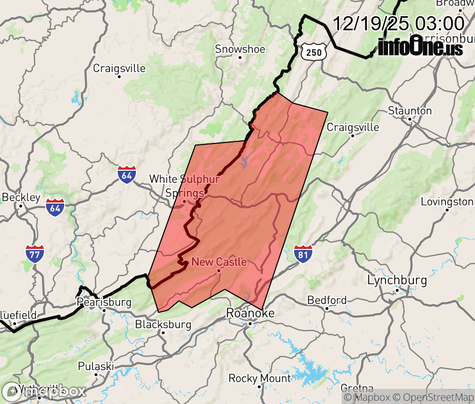 Canceled 12/19/25 3:45 AM Special Weather Statement issued December 19 at 2:59AM EST by NWS Blacksburg VA At 259 AM EST, Doppler radar was tracking heavy rain showers along a line extending from near Marlinton to Newport. Movement was east at 40 mph. HAZARD...Wind gusts up to 50 mph. SOURCE...Radar indicated. IMPACT...Gusty winds could knock down tree limbs and blow around unsecured objects. Locations impacted include... Alleghany... Covington... Clifton Forge... White Sulphur Springs... Troutville... New Castle... and Paint Bank. ![]() |