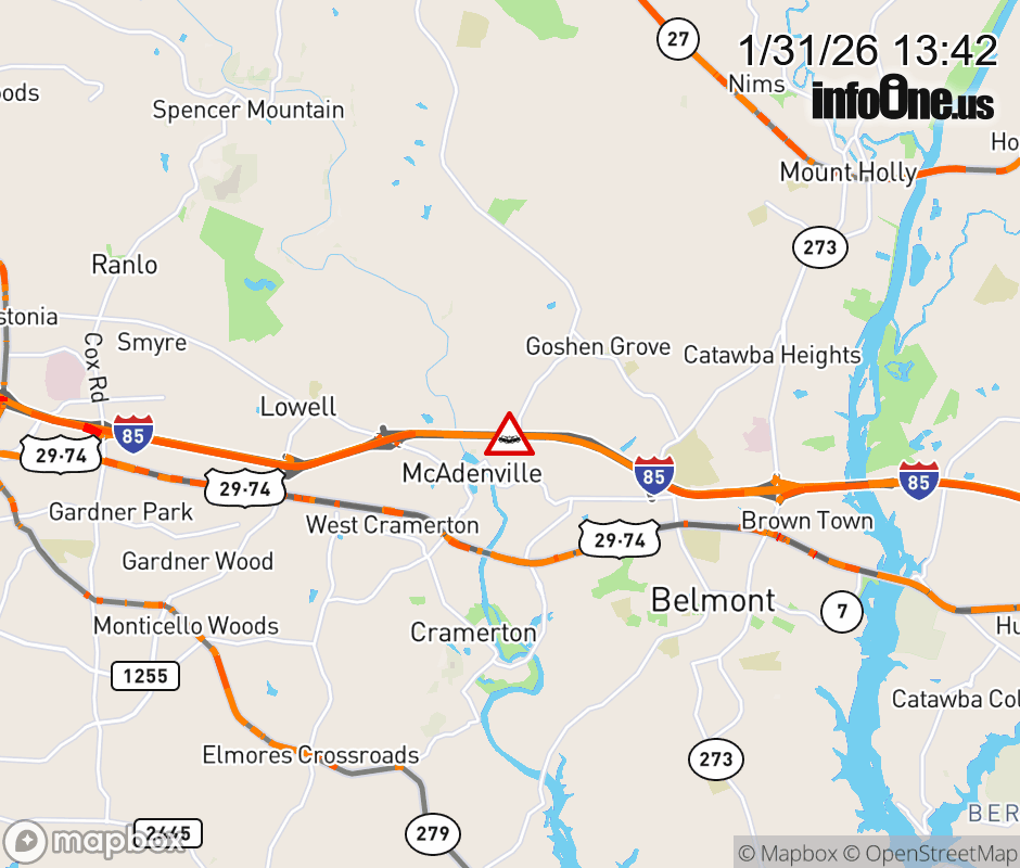 The left lane is closed 1 mile past Exit 26 (Belmont Mt Holly Rd). Updated: Sat 1/31/26 1:42 PM EST ![]() Updated: Sat 1/31/26 1:42 PM EST |