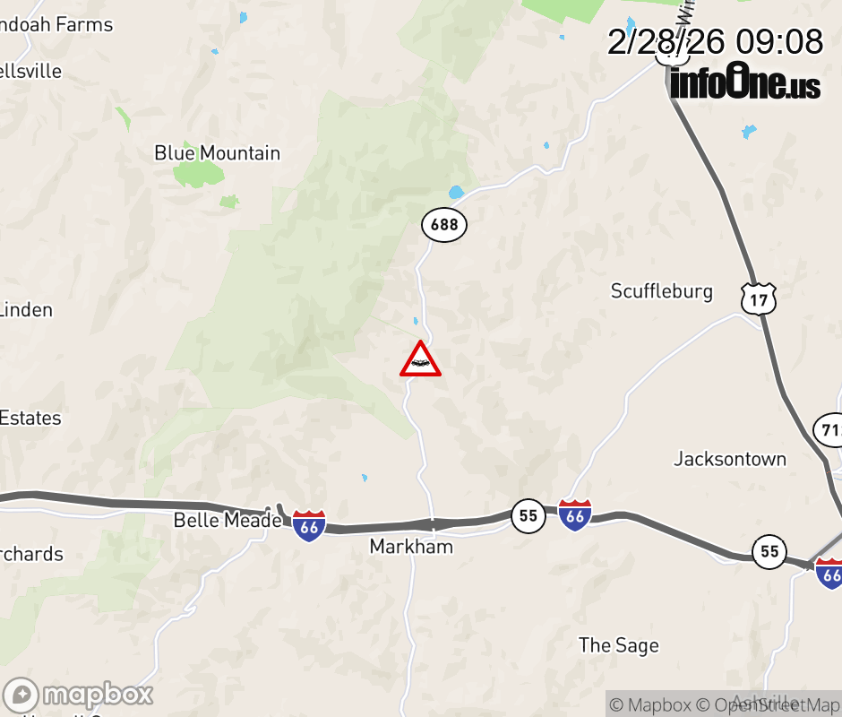 On Rt. 688 in the County of Fauquier, in the vicinity of Belle Meade Ln; Marshall School Ln; FR-284E/W, motorists can expect delays due to a vehicle crash. All north lanes are closed. All south lanes are closed. Updated: Sat 2/28/26 9:08 AM EST ![]() Updated: Sat 2/28/26 9:08 AM EST |