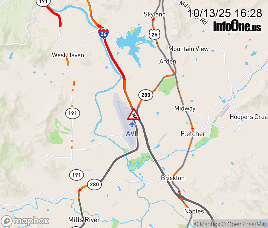 The right lane is closed on the off-ramp at Exit 40, NC 280 (Airport Road). ![]() |