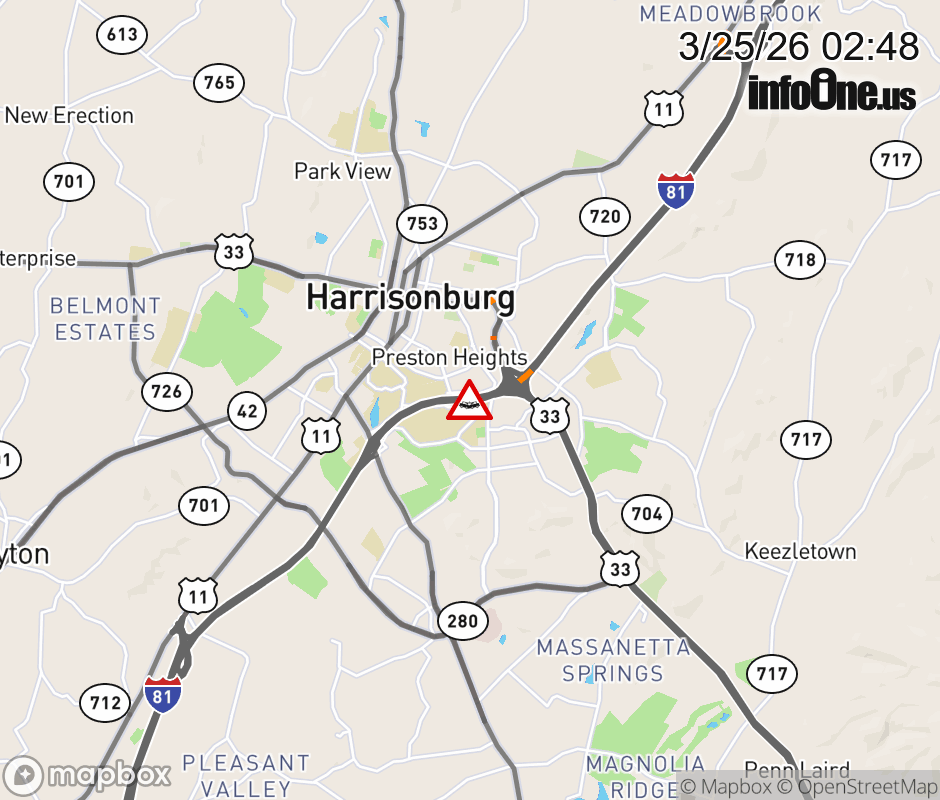 On I-81 at mile marker 247 in the County of Rockingham, motorists can expect delays due to a vehicle crash. The north exit 247B is closed. ![]() |
