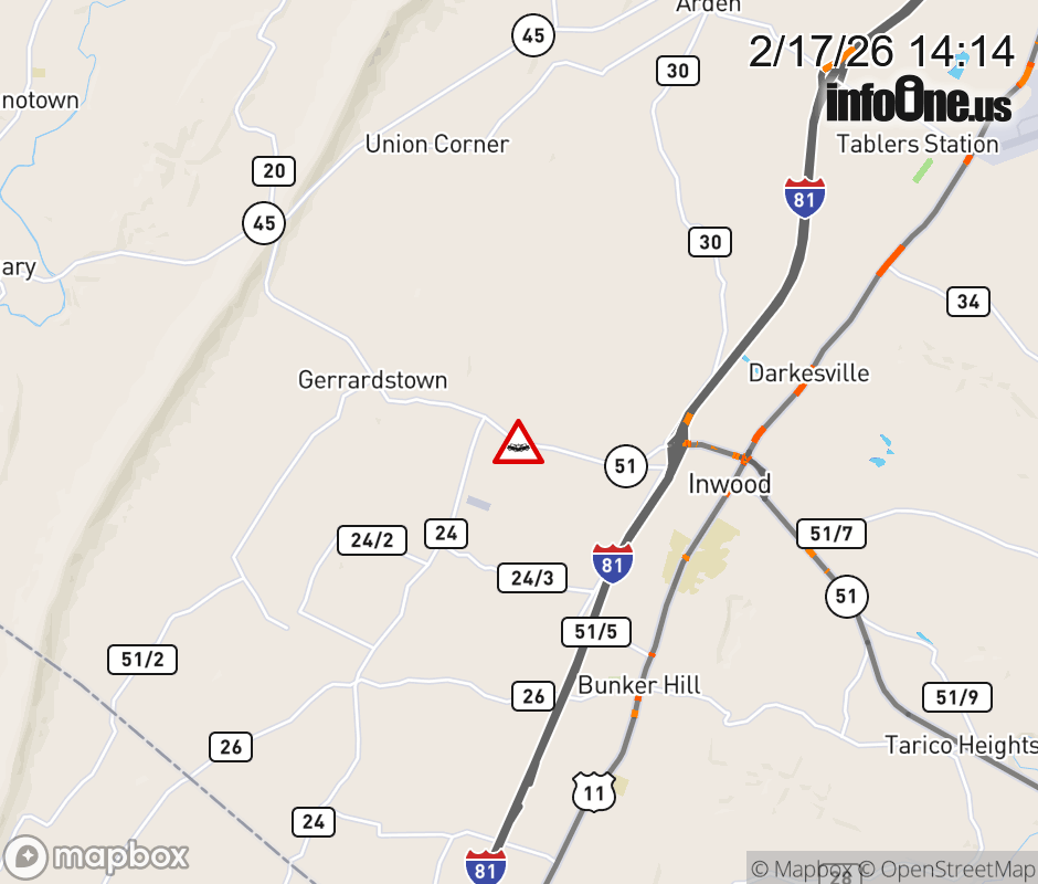 Vehicle Crash on WV-51 (3200 BLK of Gerrardstown Rd) in Gerrardstown. ![]() |