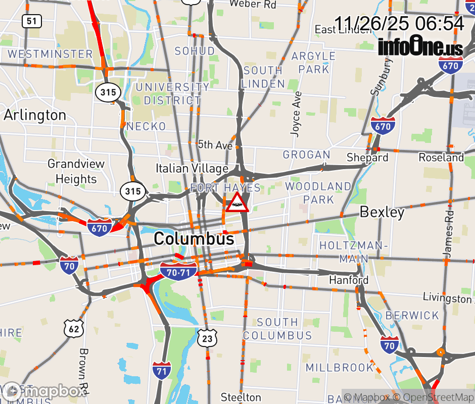 The right lane is blocked on Ramp I-71 North to I-670 West, due to a crash. ![]() |