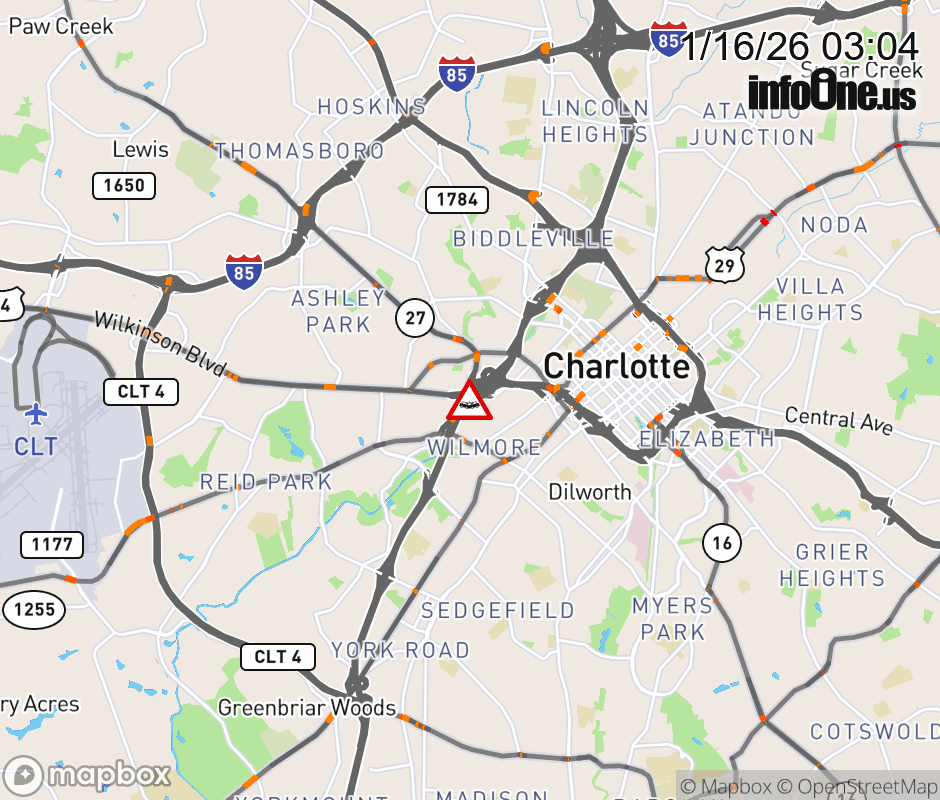 Two ramp lanes are closed near Exit 9 (I-277). ![]() |