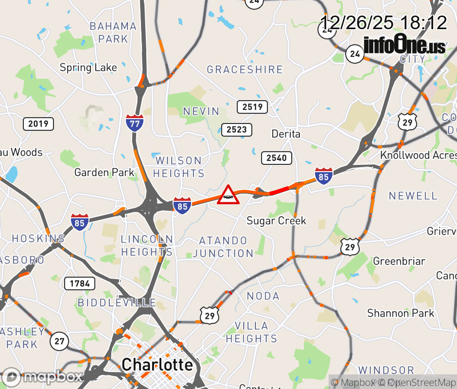 Location: I-85S at MM 39, NC Vehicle Crash.