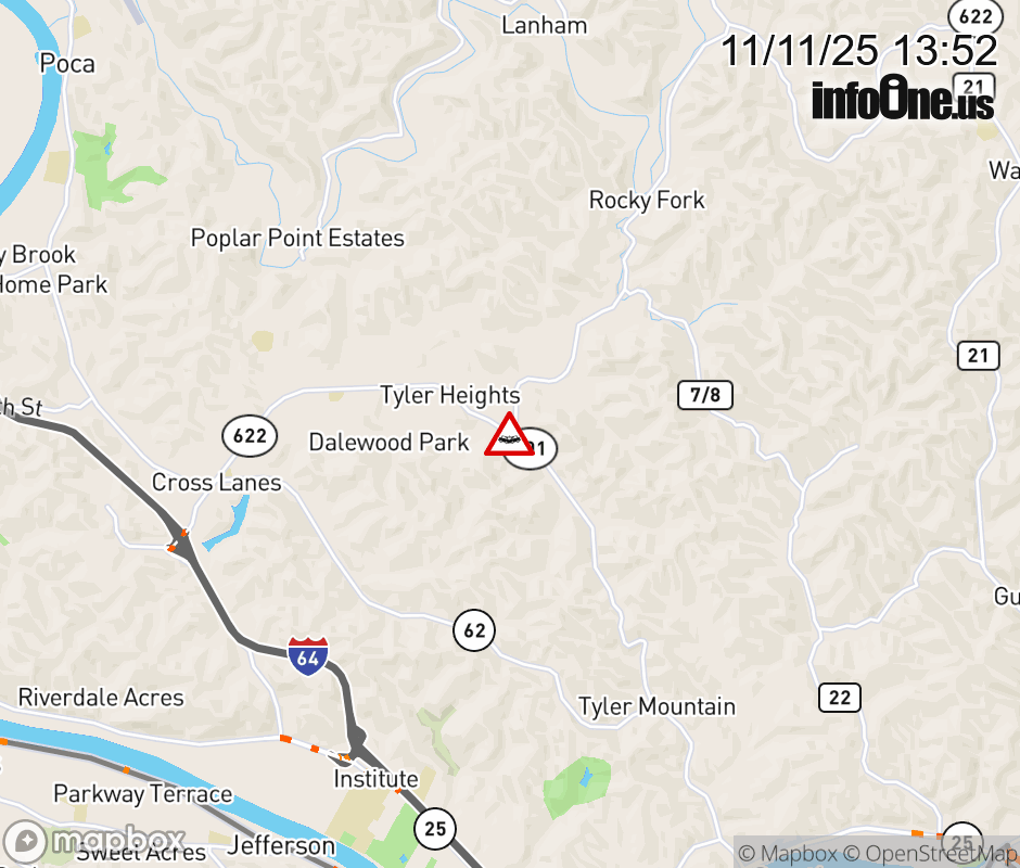 Vehicle Crash on WV-501 (Big Tyler Rd) & WV-622 (Rocky Fork Rd) in Cross Lanes. ![]() |
