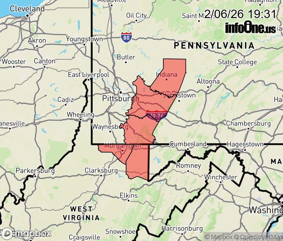 Canceled 2/7/26 5:49 AM Winter Weather Advisory issued February 6 at 7:29PM EST until February 7 at 6:00AM EST by NWS Pittsburgh PA * WHAT... Snow expected. Total snow accumulations between 2 and 6 inches. Winds gusting as high as 40 mph. * WHERE... Portions of southwest Pennsylvania and northern West Virginia. * WHEN... Until 6 AM EST Saturday. * IMPACTS... Travel could be very difficult. Plan on slippery road conditions. The hazardous conditions will impact the Friday evening commute. ![]() |
